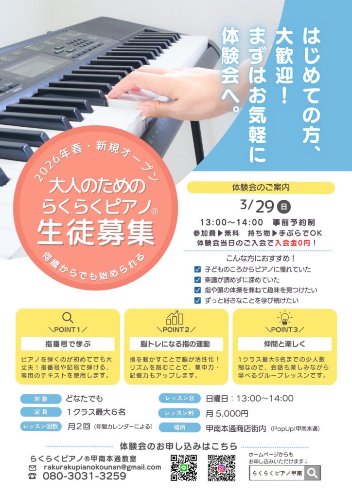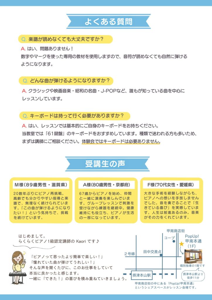 久しぶりに鍵盤に触れる方にも安心してご参加いただける内容をご用意しています。
